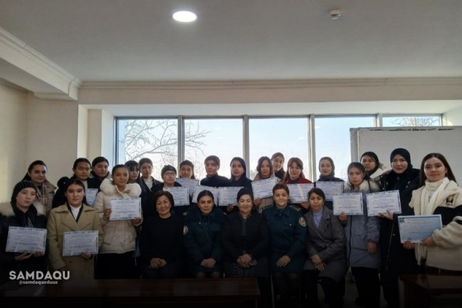 A roundtable discussion on the topic “A Well-Mannered Girl is the Mirror of Society” was held among the female students of the Faculty of Construction at Samarkand State University of Architecture and Construction named after Mirzo Ulug‘bek. The event was organized by Shoxida Yuzboyeva, Dean’s Advisor on Women’s Issues, university prevention officer Major Nargiza Pirmatova, and tutors from the Students’ Dean’s Office.