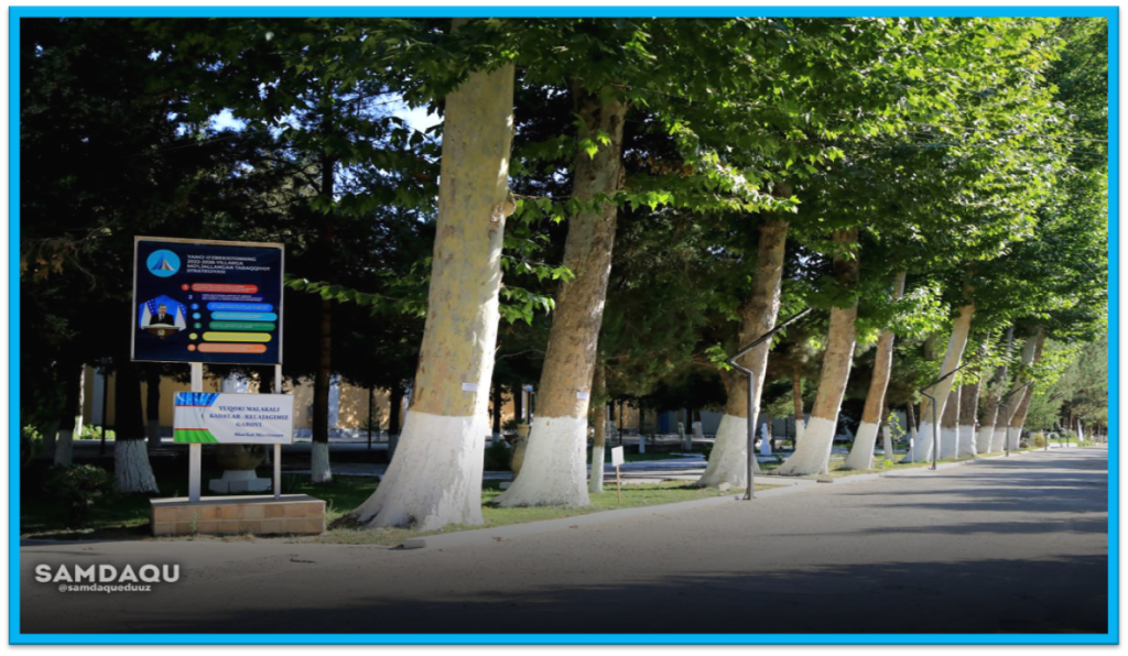 The total volume of water used for drinking and irrigation purposes at the university amounts to 135,000 cubic meters. More than 2,500 trees and over 8,000 square meters of green lawn have been planted across the campus. The majority of the trees are drought-resistant species. Around 50 fruit trees and approximately 30 ornamental tree varieties have also been planted.